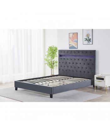 Pat Tapitat Catifea, cu Iluminare Led, Somiera Inclusa, Gri Inchis, 160x200cm, Fara Saltea, cod FB-18