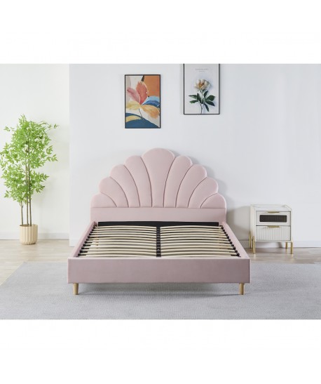 Pat Tapitat Catifea, Somiera Inclusa, Roz, 140x200cm, Fara Saltea cod LB-50